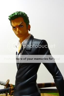Had some problem squeezing all 3 hilts into the plastic rope-like holder attached to Zoro's body, balancing the huge gun on his arm so that it packs the power and there seems to be some leftover liquid or oil in one of the swords from manufacture. Otherwise, all details are great!